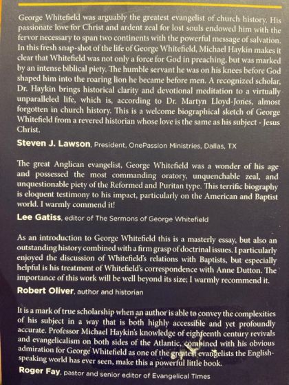 George Whitefield was arguably the greatest evangelist of church history. His passionate love for Christ and ardent zeal for lost souls endowed him with the fervor necessary to span two continents with the powerful message of salvation. In this fresh snap-shot of the life of George Whitefield, Michael Haykin makes it clear that Whitefield was not only a force for God in preaching, but was marked by an intense biblical piety. The humble servant he was on his knees before God shaped him into the roaring lion he became before men. A recognized scholar, Dr. Haykin brings historical clarity and devotional meditation to a virtually unparalleled life, which is, according to Dr. Martyn Lloyd-Jones, almost forgotten in church history. This is a welcome biographical sketch of George Whitefield from a revered historian whose love is the same as his subject - Jesus Christ.