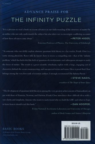 Speculation is rife that by 2012 the elusive Higgs boson will be found at the Large Hadron Collider. If found, the Higgs boson would help explain why everything has mass. But there's more at stake—what we're really testing is our capacity to make the universe reasonable. Our best understanding of physics is predicated on something known as quantum field theory. Unfortunately, in its raw form, it doesn't make sense—its outputs are physically impossible infinite percentages when they should be something simpler, like the number 1. The kind of physics that the Higgs boson represents seeks to “renormalize” field theory, forcing equations to provide answers that match what we see in the real world.The Infinity Puzzle is the story of a wild idea on the road to acceptance. Only Close can tell it.