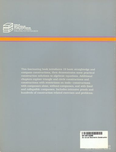This fascinating book introduces 19 basic straightedge and compass constructions, then demonstrates some practical construction solutions to algebraic equations. Additional chapters explore triangle and circle constructions and constructions with restrictions on tools - constructions with compasses alone, without compasses, and with fixed and collapsible compasses. Includes extensive proofs and hundreds of construction-related exercises and problems. -- from back cover.