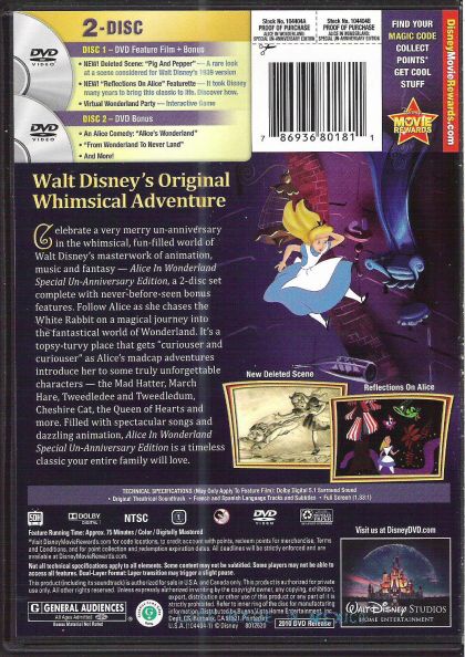 | Writer | Lewis Carroll, Winston Hibler, Ted Sears, Bill Peet, Erdman Penner, Joe Rinaldi, Milt Banta, William Cottrell, Dick Kelsey, Joe Grant, Dick Huemer, Del Connell, Tom Oreb, John Walbridge, Aldous Huxley | |