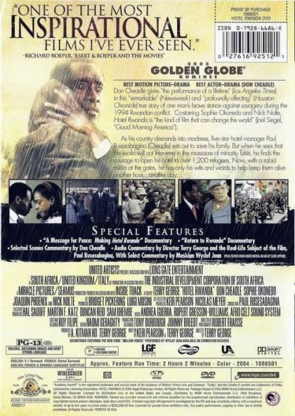 In the midst of horrendous upheaval and genocide in Rwanda in 1994 one man strives to protect and save his family from the dangers of this threat, but in the end he protects hundreds of people, bringing them to safety. Paul Rusesabagina (Don Cheadle) is the manager of the four star Hotel des Mille Collines and he and his family live a fairly comfortable life. However the world of the Rwanda that they live in is about to turn upside down with a genocidal clash between the Hutu and Tutsi, which are two different ethnic Rwandan groups. Only wanting to protect his family Rusesabagina gradually takes in more and more refugees of the violence at the Mille Collines. With a very minimal amount of help from a protective UN force headed by Colonel Oliver (Nick Nolte) who is himself interested in helping the people, he manages to protect and bring to safety several hundred people in the midst of all the violence.