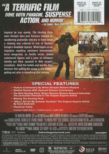 Based on a true story, The Hunting Party tells the tale of Simon (Richard Gere) a disgraced journalist, Benjamin (Jesse Eienberg), a young greenhorn journalist, and "the Duck" (Terrence Howard), an experienced cameraman. The three men embark, without permission, on a personal search for a man known as "The number one war criminal from the Bosnian Conflict," Radoslav Bogdanovic (Ljubomir Kerekeš), also known as "The Fox." Soon, however, the men find themselves in serious danger when they are mistakenly labeled as a CIA hit squad. The hunters become the hunted when "The Fox" sets his sights on the three men.