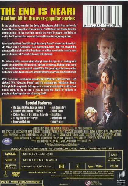 It’s been more than a year since millions of people simply disappeared in the Rapture, and Nicolae Carpathia (Gordon Currie) took advantage of the chaos to take power and now essentially rules the world. He had great support at first for he seemed to bring world peace, but things are deteriorating. There’s been an attempt on the life of President Fitzhugh (Lou Gossett Jr.) and he now suspects Carpathia might be the Antichrist, especially with warfare everywhere as well as disease epidemics, some demonically spread by infected Bibles. He throws in with the Tribulation Force, an underground resistance group headed by investigative reporter (Kirk Cameron). Buck’s wife Chloe (Janaya Stephens) is threatened by the viral plague and Buck, Fitzhugh, Rayford Steele (Brad Johnson) and others in the Tribulation Force must try to stop the plagues and head off WWIII. Fitzhugh survives a horrendous fall at the hands of Carpathia, and Buck witnesses to him and he is saved. He then goes to confront Carpathia one on one to try to resolve it all.