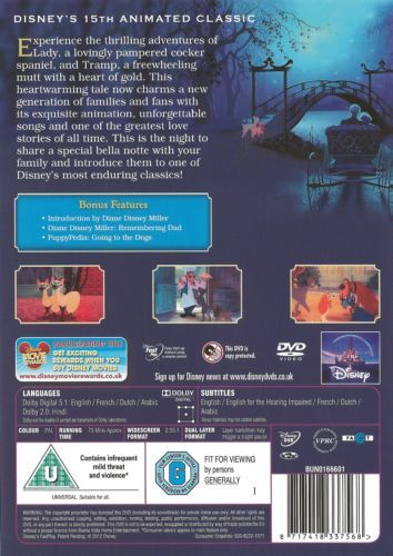 Lady, a golden cocker spaniel, meets up with a mongrel dog who calls himself the Tramp. He is obviously from the wrong side of town, but happenings at Lady's home make her decide to travel with him for a while.