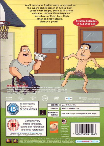 Sick, twisted, politically incorrect and Freakin' Sweet animated series featuring the adventures of the dysfunctional Griffin family. Bumbling Peter and long-suffering Lois have three kids. Stewie (a brilliant but sadistic baby bent on killing his mother and taking over the world), Meg (the oldest, and is the most unpopular girl in town) and Chris (the middle kid, he's not very bright but has a passion for movies). The final member of the family is Brian - a talking dog and much more than a pet, he keeps Stewie in check whilst sipping Martinis and sorting through his own life issues.