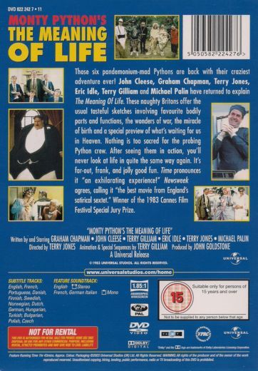 From the birthing of so many children that they are living in drawers, under chairs, and in every nook and cranny in the house to the middle age gluttony of a man that can't resist just one last bite of dinner causing him to explode, these stories are woven together to show us the different stages of life as seen through the comical wit of Monty Python. Ever wondered what would happen when Death crashes your dinner party? Could organ donations truly be so disgusting? Is there really a machine in the hospital that goes BING and must it be at all operations, births, deaths and other proceedures simply to pad the bill? The Monty Python troupe leaves no part of the human timeline of life to chance.