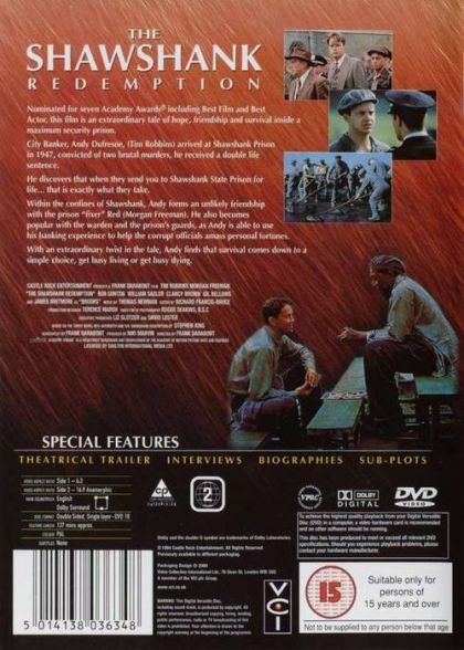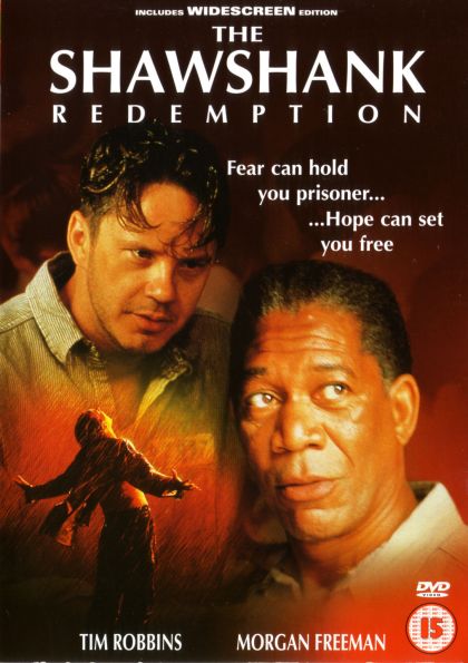 Andy DuFresne (Tim Robbins), a successful banker, was convicted of murdering his wife and her lover. Sentenced to life in prison, he learns prison life the hard way. He approaches Red (Morgan Freeman), a lifer who is known for procurement. Andy wants a poster of Rita Hayworth and a rock hammer. On work duty one day he overhears the head guard lamenting that the IRS will take a chunk of money he inherited. Andy offers to help him with a tax loophole so he won't have to pay the taxes. That leads to Andy being moved to work detail in the library and the beginning of his work doing taxes and legal matters for guards as well as being involved in money manipulations for the warden. A young man comes into the prison. He has proof that Andy is innocent. When the warden has him killed because Andy is too valuable to let go, Andy sees the handwriting on the wall. After having a chat with Red, Andy vanishes during the night. He visits banks he has put the warden's money into under a fake name, takes the money, and goes to Mexico. He sends reports of what has transpired in the prison to the authorities, which results in a major prison overhaul. Red gets paroled and follows Andy's last instructions to meet him in Mexico.