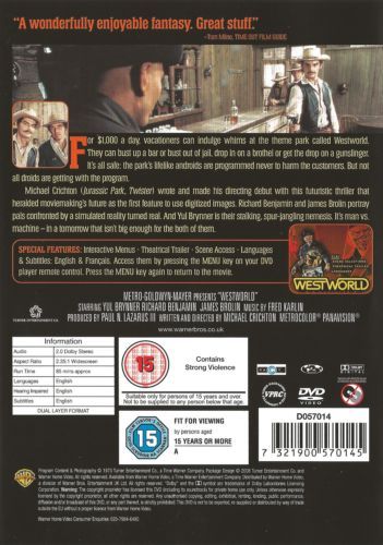 An amusement park for rich vacationers. The park provides its customers a way to live out their fantasies through the use of robots that provide anything they want. Two of the vacationers choose a wild west adventure. However, after a computer breakdown, they find that they are now being stalked by a rogue robot gun-slinger.