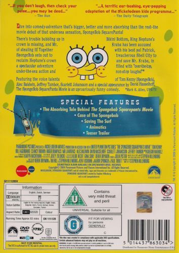 In "The Spongebob Squarepants Movie" Spongebob (Tom Kenny) and Patrick (Bill Fagerbakke) are sent to find King Neptune's crown after Mr. Krabbs is accused of stealing it. Meanwhile, Mr. Krabbs has been frozen by King Neptune and Plankton is taking over Bikini Bottom while the king mourns his lost crown. As they make their way to the king's crown they are chased by a bounty hunting fish hired by the villian Plankton. Along the way they are aided by sea monsters, a "magical" mermaid Mindy who is also the king's daughter, and David Hasselhoff. Somehow they manage to escape the bounty hunter every time until they are captured by a diver who takes them to his shop where they retrieve the crown. But how will they get back to Bikini Bottom in time?