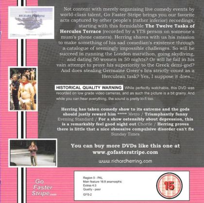 Richard Herring shares with us his mission to make something of his sad comedian's existence through a catalogue of seemingly impossible challenges. So will he succeed in running the London marathon, going skydiving, and dating 50 women in 50 nights? Or will he fail in his vain attempt to prove his superiority to the Greek demi-god? And does stealing Germaine Greer's bra strictly count as a Herculean task? Yes, I suppose it does...