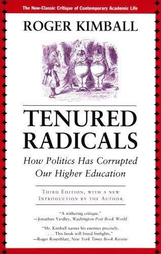 Since Tenured Radicals first appeared in 1990, it has achieved a stature as the leading critique of the ways in which the humanities are now taught and studied at American universities. Trenchant and witty, it lays bare the sham of what now passes for serious academic pursuit in too many circles. In this new edition, completely reset, Roger Kimball has brought the text up to date and has added a new Introduction. Those who have never read Tenured Radicals are in for a treat; others may find a second reading worth their while. “Mr. Kimball names his enemies precisely.... This book will breed fistfights.”-Roger Rosenblatt, New York Times Book Review. “All persons serious about education should see it.”-Allan Bloom, author of The Closing of the American Mind. “Tenured Radicals is a withering critique.”-Jonathan Yardley, Washington Post Book World. “A bravado performance of critical journalism...a vivid, up-to-the-minute account, alternately amusing and dismaying, of the takeover of the academy by ideology.”-Robert Alter, Newsday. “A stinging account.... The commonsense approach of Tenured Radicals provokes constant reflections and occasional laughter at the squirming victims.”-Roger Shattuck, author of The Banquet Years.