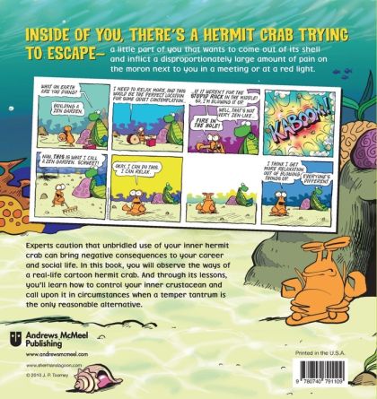 The comic strip Sherman’s Lagoon appears in more than 200 newspapers in 30 countries and in six languages. Toomey’s wonderful strip combines the upbeat tone of under-the-sea fun, with a real-life look that enlightens and entertains.Jim Toomey's environmentally aware comic strip, Sherman's Lagoon, appears in 150 newspapers in 30 countries and in 6 languages. Inside this latest cartoon collection, Discover Your Inner Hermit Crab, more than 42 weeks of Sherman's Lagoon stand ready to transport readers to an imaginary lagoon near the South Pacific island of Kapupu in the Palauan archipelago of Micronesia, where a cast of coral-reef critters battles the encroachment of the hairless beach apes with their so-called civilized human ways.Inhabitants of this nautical neighborhood include Sherman, an always-hungry-but-otherwise-typical great white shark; his witty, pearl-wearing wife, Megan; friendly Fillmore the turtle; geeky fish Ernest; macho hermit crab Hawthorne; and salty old Captain Quigley, who remains vengeful having lost his leg to Sherman.Lauded for promoting marine conservation, Toomey has been described as a "breath of fresh water" by the Washington Post and designated as an Environmental Hero by the National Oceanic and Atmospheric Administration in recognition of his efforts to protect and preserve the nation's environment.