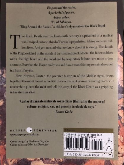 The Black Death was the fourteenth century's equivalent of a nuclear war. It wiped out one-third of Europe's population, takingmillion lives. And yet, most of what we know about it is wrong. The details of the Plague etched in the minds of terrified schoolchildren -- the hideous black welts, the high fever, and the awful end by respiratory failure -- are more or less accurate. But what the Plague really was and how it made history remain shrouded in a haze of myths.Now, Norman Cantor, the premier historian of the Middle Ages, draws together the most recent scientific discoveries and groundbreaking historical research to pierce the mist and tell the story of the Black Death as a gripping, intimate narrative.