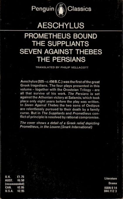 Prometheus Bound, The Suppliants, Seven Against Thebes, The Persian