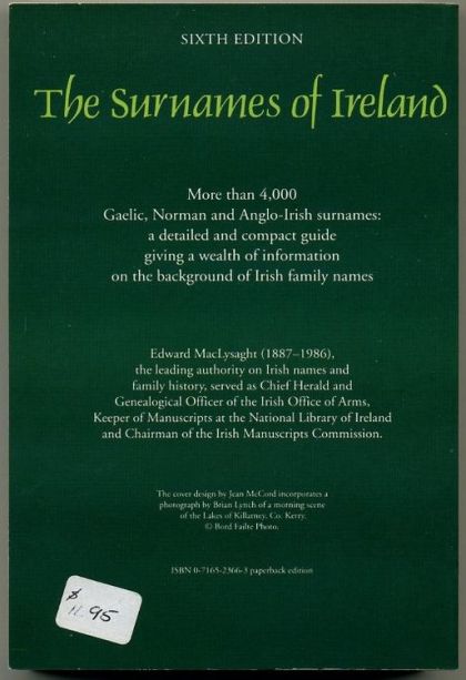 Ireland was one of the earliest countries to evolve a system of hereditary surnames. More than 4,000 Gaelic, Norman and Anglo-Irish surnames are listed in this book, giving a wealth of information on the background and location of Irish families. Edward MacLysaght was a leading authority on Irish names and family history. He served as Chief Herald and Genealogical Officer of the Irish Office of Arms. He was also Keeper of Manuscripts of the National Library of Ireland and was Chairman of the Manuscripts Commission. This book, which was first published in 1957 and now is in its sixth edition, is being reprinted for the fourth time and remains the definitive record of Irish surnames, their genealogy and their origins.