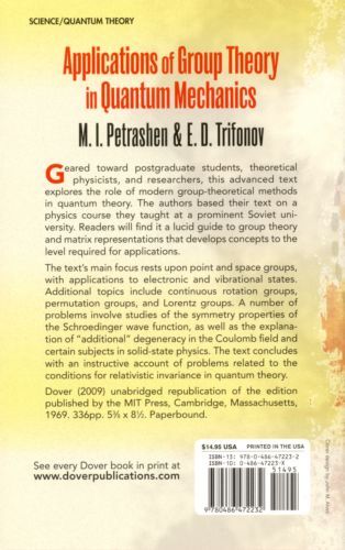 Geared toward postgraduate students, theoretical physicists, and researchers, this advanced text explores the role of modern group-theoretical methods in quantum theory. The authors based their text on a physics course they taught at a prominent Soviet university. Readers will find it a lucid guide to group theory and matrix representations that develops concepts to the level required for applications.The text's main focus rests upon point and space groups, with applications to electronic and vibrational states. Additional topics include continuous rotation groups, permutation groups, and Lorentz groups. A number of problems involve studies of the symmetry properties of the Schroedinger wave function, as well as the explanation of "additional" degeneracy in the Coulomb field and certain subjects in solid-state physics. The text concludes with an instructive account of problems related to the conditions for relativistic invariance in quantum theory.