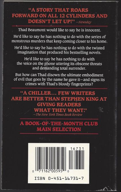 After thirteen years of international bestseller stardom with his works of violent crime fiction, author George Stark is officially declared dead--revealed by a national magazine to have been killed at the hands of the man who created him: the once well-regarded but now obscure writer Thad Beaumont. Thad's even gone so far as to stage a mock burial of his wildly successful pseudonym, complete with tombstone and the epitaph "Not a Very Nice Guy." Although on the surface, it seems that Thad can finally concentrate on his own novels, there's a certain unease at the prospect of leaving George Stark behind. But that's nothing compared to the horror about to descend upon Thad's new life. There are the vicious, out-of-control nightmares, for starters. And how is he able to explain the fact that everyone connected to George Stark's untimely demise is now meeting a brutal end of their own in a pattern of homicidal savagery--and why each blood-soaked crime scene has Thad's fingerprints all over it? Thad Beaumont may have once believed that George Stark was running out of things to say, but he's going to find out just how wrong he is.