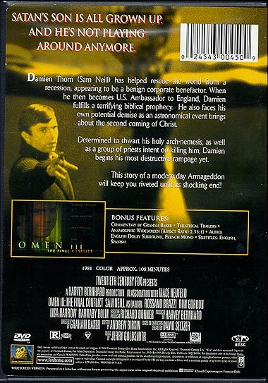 Damien Thorn (Sam Neill) has helped rescue the world from a recession, appearing to be a benign corporate benefactor. When he then becomes U.S. Ambassador to England, Damien fulfills a terrifying biblical prophecy. He also faces his own potential demise as an astronomical event brings about the second coming of Christ.