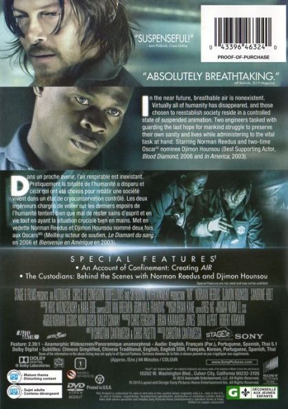 In the near future, breathable air is nonexistent. Virtually all of humanity has disappeared, and those chosen to reestablish society reside in a controlled state of suspended animation. Two engineers tasked with guarding the last hope for mankind struggle to preserve their own sanity and lives while administering to the vital task at hand.