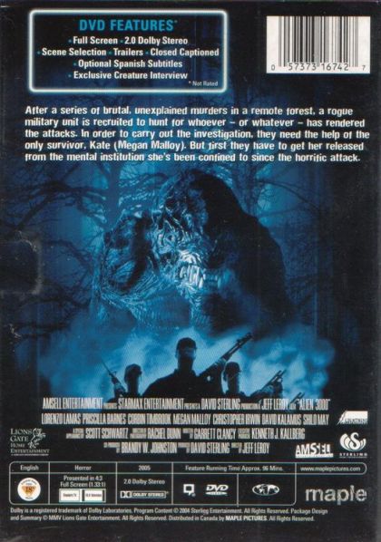 After a series of brutal, unexplained murders in a remote forest, a rogue military unit is recruited to hunt for whoever - or whatever - has rendered the attacks. In order to carry out the investigation, they need the help of the only survivor, Kate. But first they have to get her released from the mental institution she's been confined to since the horrific attack. Written