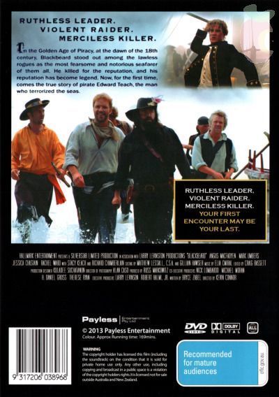 In the Golden Age of Piracy, at the dawn of the 18th century, Blackbeard stood out among the lawless rogues as the most fearsome and notorious seafarer of them all. Bristol, England, 1717. In order to restore safe passage to the sea lanes, Lieutenant Robert Maynard of the Royal Navy (Mark Umbers, Color Me Kubrick) scouts the seas and offers amnesty to all pirates who choose to give up their evil ways and banish the criminals from the hundreds of islands they occupy. An imposing force, Maynard meets his match, a pirate sailing off the Island of St. Vincent: Edward Teach (Angus Macfadyen, Braveheart). Teach's goal is to find and lay claim to the fabled treasures of Captain Kidd. Teach re-christens himself Blackbeard. The educated Maynard, now in his custody, can be of great use to Blackbeard--as a chronicler of the nefarious deeds that are to come. What unfolds is an epic battle for control of the seas, for the honor of Maynard's beloved friend Charlotte Ormond (Jessica Chastain, ER), and for the possession of untold riches that lie buried in the decaying and ghostly Vulture Island, where Blackbeard's fate would become a symbol of an era's end in the history of piracy in the New World. Everyone knows the legend, but few people really know what made him one. Now, meet one of history's most notorious figures in this rousing and spectacular adventure, featuring an all-star cast that includes Golden Globe winner Stacy Keach (American History X), Golden Globe winner Richard Chamberlain (The Thorn Birds) and Golden Globe nominee Rachel Ward (On the Beach).