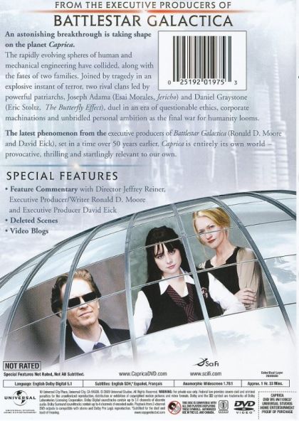 Caprica, 58 years before the Fall of the Twelve Colonies. Two families, the Graystones and the Adamas, are bound by a tragedy with unforeseen consequences, including the development of the Cylons.