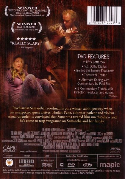 Dr. Samantha Goodman is a beautiful, young psychiatrist. Burnt out, she drives to the family’s winter cottage to spend time with her husband and sister. A relaxing weekend is jarringly interrupted when a terrifying and unexpected guest arrives. What follows is an extraordinary night of terror and evil mind games where escape is not an option.