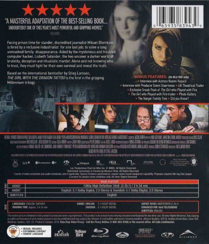 Swedish thriller based on Stieg Larsson's novel about a male journalist and a young female hacker. In the opening of the movie, Mikael Blomkvist, a middle-aged publisher for the magazine Millennium, loses a libel case brought by corrupt Swedish industrialist Hans-Erik Wennerström. Nevertheless, he is hired by Henrik Vanger in order to solve a cold case, the disappearance of Vanger's niece