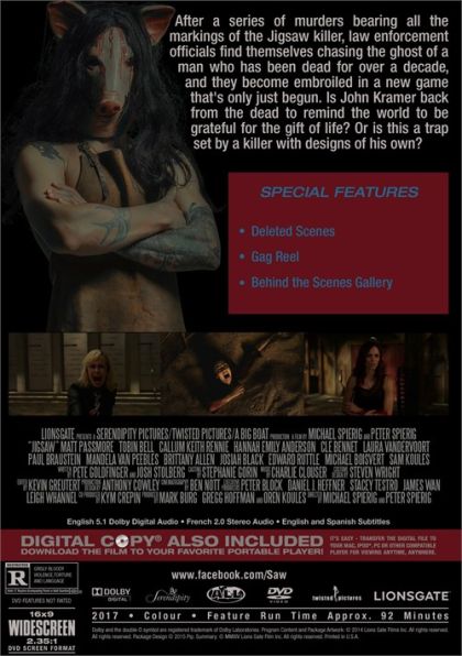 Bodies are turning up around the city, each having met a uniquely gruesome demise. As the investigation proceeds, evidence points to one man: John Kramer. But how can this be? The man known as Jigsaw has been dead for over a decade.