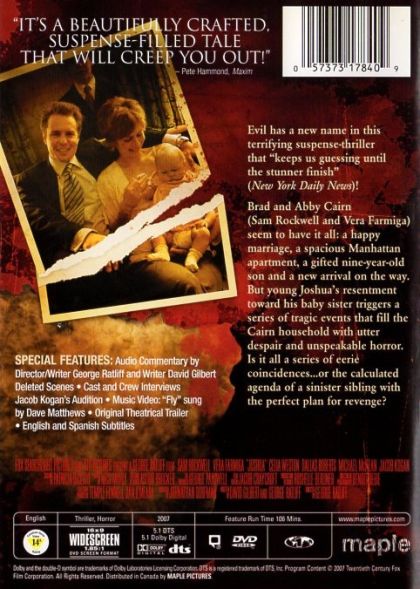The arrival of a newborn girl causes the gradual disintegration of the Cairn family; particularly for 9-year-old Joshua, an eccentric boy whose proper upbringing and refined tastes both take a sinister turn.