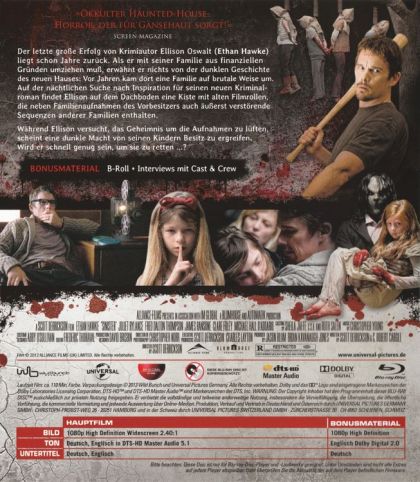 True-crime writer Ellison Oswalt is in a slump; he hasn't had a best seller in more than 10 years and is becoming increasingly desperate for a hit. So, when he discovers the existence of a snuff film showing the deaths of a family, he vows to solve the mystery. He moves his own family into the victims' home and gets to work. However, when old film footage and other clues hint at the presence of a supernatural force, Ellison learns that living in the house may be fatal.
