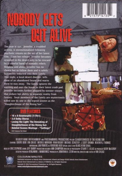 The year is 1971. Jennifer, a troubled actress, is institutionalized following psychotic visions on the set of her latest film. Upon her release, Jennifer becomes stranded in the desert only to be rescued by a colorful band of nomadic rebels. Helpless and alone, Jennifer has no choice but to follow them and is subtly but swiftly introduced into their family. That night, a local desert dweller tells them of an abandoned house and warns them to stay away. The family ignores the warning and uses the house as their latest crash pad. Jennifer becomes further plagued by sinister visions that reduce her ability to separate reality from fantasy. Soon members of the family are mysteriously killed one by one in the legend known as the "Slaughterhouse Of the Rising Sun"...