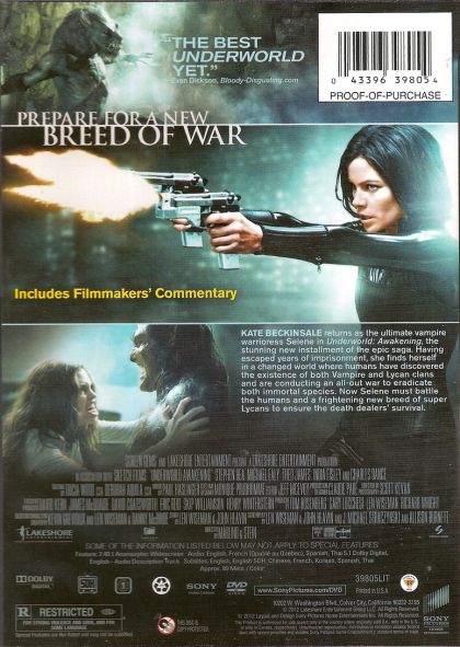 Having escaped years of imprisonment, vampire warrioress Selene finds herself in a changed world where humans have discovered the existence of both Vampire and Lycan clans and are conducting an all-out war to eradicate both immortal species. Now Selene must battle the humans and a frightening new breed of super Lycans to ensure the death dealers' survival.