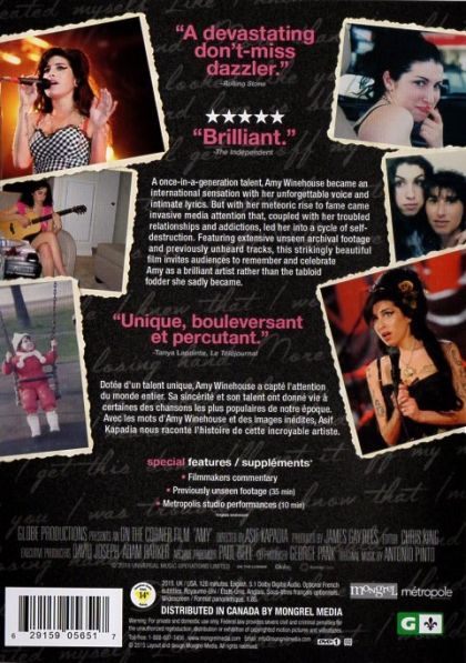 A documentary on the life of Amy Winehouse, the immensely talented yet doomed songstress. We see her from her teen years, where she already showed her singing abilities, to her finding success and then her downward spiral into alcoholism and drugs.