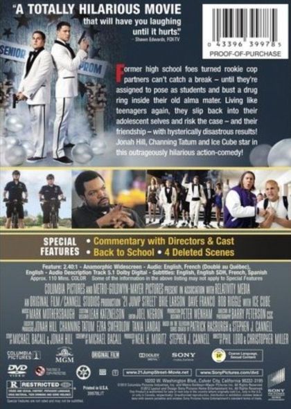 When cops Schmidt and Jenko join the secret Jump Street unit, they use their youthful appearances to go undercover as high school students. They trade in their guns and badges for backpacks, and set out to shut down a dangerous drug ring. But, as time goes on, Schmidt and Jenko discover that high school is nothing like it was just a few years earlier -- and, what's more, they must again confront the teenage terror and anxiety they thought they had left behind.