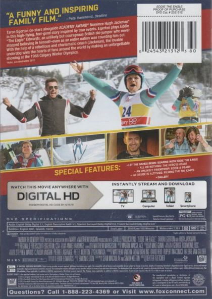 The feel-good story of Michael 'Eddie' Edwards, an unlikely but courageous British ski-jumper who never stopped believing in himself—even as an entire nation was counting him out. With the help of a rebellious and charismatic coach, Eddie takes on the establishment and wins the hearts of sports fans around the world by making an improbable and historic showing at the 1988 Calgary Winter Olympics.