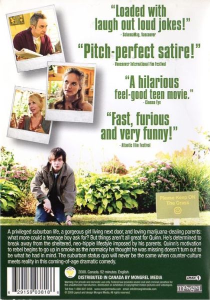 The story of a teenage boy coming of age in a suburban grow-operation, where every day is paradise or fresh hell. But it's always a trip. Sheltered all his life and home-schooled by loving parents who are also committed criminals, Quinn Dawson yearns to experience the normalcy of the suburban world which surrounds him.