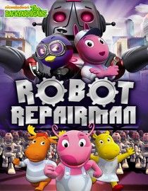 Robot Repairmen (S04E06) finds the Backyardigans in futuristic metropolis set to Roller Disco Music. Help Austin be the best robot repairmen he can be! The DVD contains this double-length episode plus two additional episodes, Runaway Train (S04E01) and The Attack of the 50 Foot Woman! (S04E07).