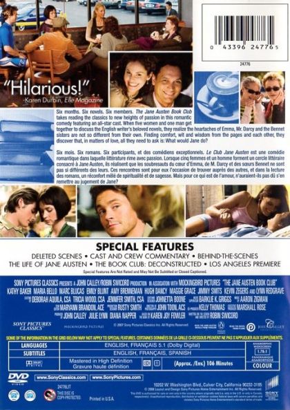 Six Californians start a club to discuss the works of Jane Austen. As they delve into Austen's literature, the club members find themselves dealing with life experiences that parallel the themes of the books they are reading.