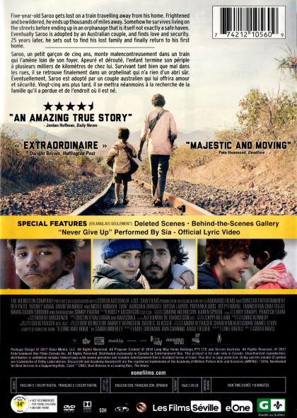 A five-year-old Indian boy gets lost on the streets of Calcutta, thousands of kilometers from home. He survives many challenges before being adopted by a couple in Australia; 25 years later, he sets out to find his lost family.