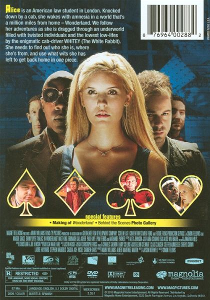 A modern take on the classic fairytale, Alice in Wonderland, set in South East England.An American law student in London. Knocked down by a black cab, she wakes with amnesia in a world that's a million miles from home - Wonderland. We follow her adventures as she's dragged through an underworld filled with twisted individuals and the lowest low-lifers, by the enigmatic cab driver, Whitey. She needs to find out who she is, where she's from and use what wits she has left to get back home in one piece. As her journey progresses she discovers nothing is what it seems, realizes that fate and life are terminally entwined, and finds true love lurking in the unlikeliest place.
