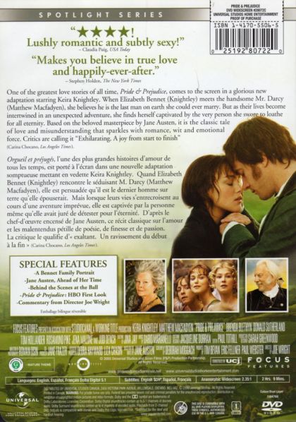 A story of love and life among the landed English gentry during the Georgian era. Mr. Bennet is a gentleman living in Hertfordshire with his overbearing wife and five daughters, but if he dies their house will be inherited by a distant cousin whom they have never met, so the family's future happiness and security is dependent on the daughters making good marriages.