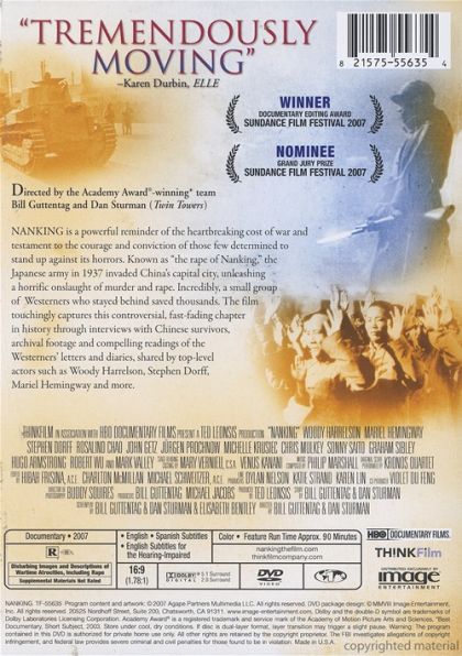 The story of the rape of Nanking, one of the most tragic events in history. In 1937, the invading Japanese army murdered over 200,000 and raped tens of thousands of Chinese. In the midst of this horror, a small group of Western expatriates banded together to save 250,000. Nanking shows the tremendous impact individuals can make on the course of history.