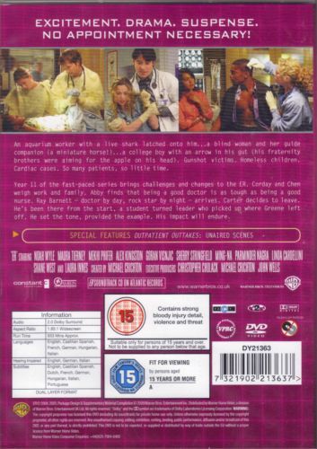 The doctors and nurses of County's ER confront the daily challenges of a busy urban hospital, including overcrowded waiting rooms, staffing shortages, and the impact of life-and-death decisions. While they teach the next generation of doctors, each must tackle the demands of their personal lives, at times unsuccessfully. The staff is led by Chief of Emergency Medicine Dr. Luka Kovac (Goran Visnjic, "Welcome to Sarajevo"), a gifted teacher who came from Croatia to Chicago, where he's built a new life and a new family, but is still followed by the shadows of a tragic past, and Dr. Kerry Weaver, County's Chief of Staff (Laura Innes, "Deep Impact"), a compassionate doctor and uncompromising administrator who must face some dramatic changes in her life. The ER is staffed by two new attending physicians: Dr. Gregory Pratt (Mekhi Phifer, "8 Mile") whose rebel days seem behind him as he matures into a new role, and former Chief Resident Dr. Archie Morris (Scott Grimes, "Band of Brothers") who faces the realization medicine may be his true calling. The backbone of the ER are third-year year residents Dr. Abby Lockhart (Maura Tierney, "Newsradio") a former ER nurse turned doctor, who must balance a demanding career with a new family, and Dr. Ray Barnett (Shane West "A Walk to Remember") whose rock-doc days are finally behind him, along with feisty nurse Samantha Taggart (Linda Cardellini, "Brokeback Mountain") a tough single mother attempting to balance her difficult personal issues with her demanding professional life. Now in surgery, Dr. Neela Rasgotra (Parminder Nagra, "Bend it Like Beckham") makes a professional change as she recovers from the death of her husband, and new to the ER is intern Dr. Tony Gates (John Stamos, "Full House") a paramedic turned doctor who sees rules as made to be broken. Featured this season as recurring characters are Leland Orser ("Runaway Jury") as the ER's highly individual surgical attending, Dr. Lucien Dubenko, J. P. Manoux as surgical Chief Resident Dr. Damien Crenshaw, and a lively group of new interns and medical students. Guest stars for the first half of the season will include Sally Field ("Norma Rae") as Abby's bipolar mother, John Mahoney ("Frasier") as a club owner with an colorful lifestyle, and in a six-episode story arc as a patient who suffers a stroke in the overcrowded ER under Luka's care, actor/director Forest Whitaker ("Good Morning Vietnam".)