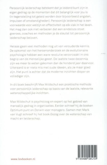 In dit boek beschrijft Max Wildschut een praktische methode voor persoonlijk leiderschap op basis van de laatste, relevante wetenschappelijke inzichten.