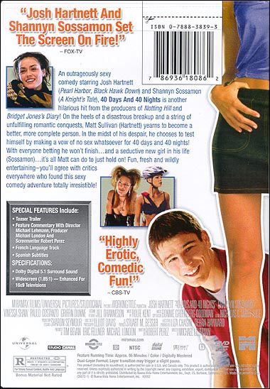 Matt Sullivan's last big relationship ended in disaster and ever since his heart's been aching and his commitment's been lacking. Then came Lent, that time of year when everybody gives something up. That's when Matt decides to go where no man's gone before and make a vow: No sex. Whatsoever. For 40 straight days. At first he has everything under control. That is until the woman of his dreams, Erica, walks into his life.