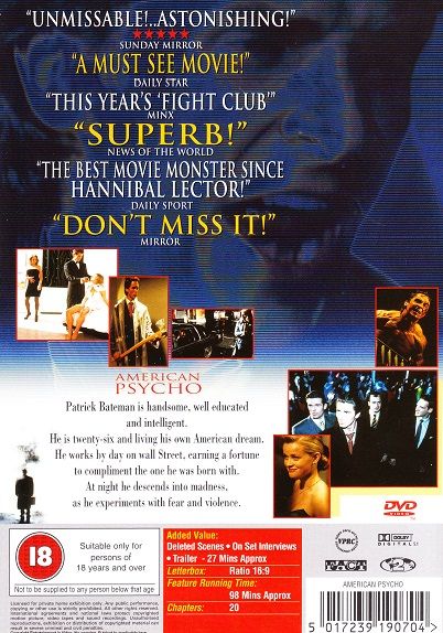 A wealthy New York investment banking executive hides his alternate psychopathic ego from his co-workers and friends as he escalates deeper into his illogical, gratuitous fantasies.