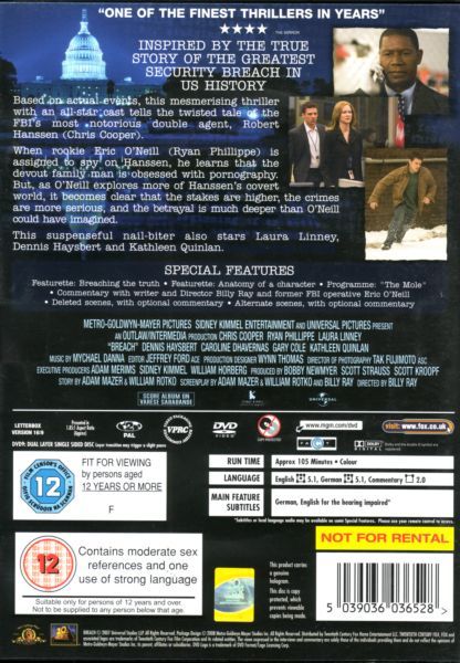 Eric O'Neill, a low-level surveillance expert with the FBI, believes he is accomplishing his dream of becoming a full-fledged agent, with his unexpected promotion and assignment to clerk for Robert Hanssen, a renowned senior agent with 25 years in the FBI. However, he soon learns the reason for his promotion is to gain Hanssen's trust and find proof that he is a traitor to the country. Determined to draw the suspected double-agent out of deep cover, O'Neill finds himself in a lethal game of spy vs. spy, where nothing is as it seems.
