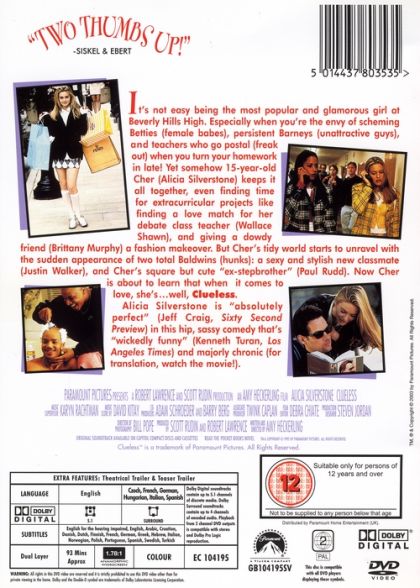 Shallow, rich and socially successful Cher is at the top of her Beverly Hills high school's pecking scale. Seeing herself as a matchmaker, Cher first coaxes two teachers into dating each other. Emboldened by her success, she decides to give hopelessly klutzy new student Tai a makeover. When Tai becomes more popular than she is, Cher realizes that her disapproving ex-stepbrother was right about how misguided she was -- and falls for him.