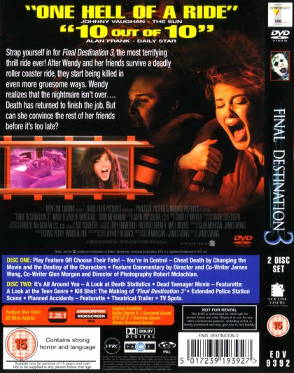 High school senior Wendy's premonition of a deadly rollercoaster ride saves her life and a lucky few, but not from death itself — which seeks out those who escaped their fate.